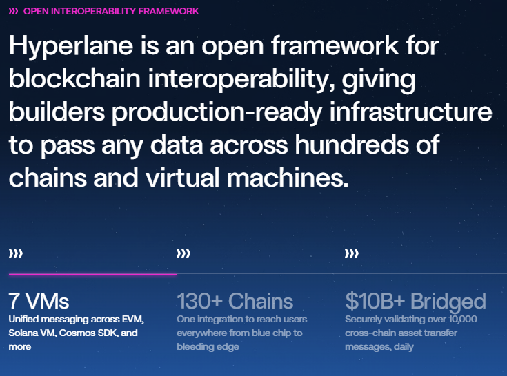 Hyperlane is a permissionless blockchain interoperability protocol that enables seamless communication and value transfer across 130+ blockchains and 7 different virtual machines.